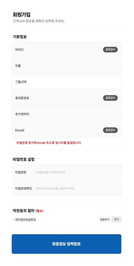 아이디 필수 중복불가 항목 (영문+숫자) 로그인,정보찾기